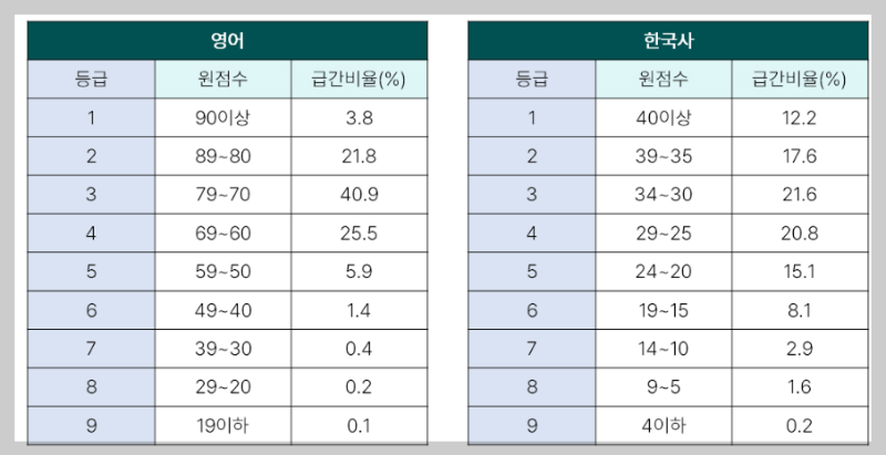 영어 & 한국사 수능예상 등급컷(절대평가)