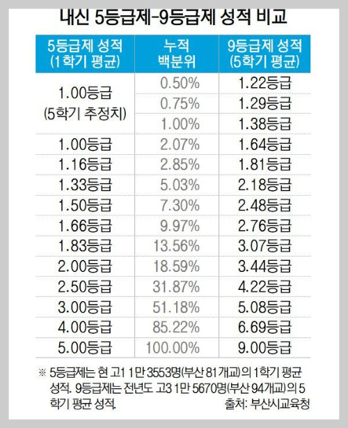 올해 고1부터 9등급제가 아닌 5등급제로 바뀌었다.