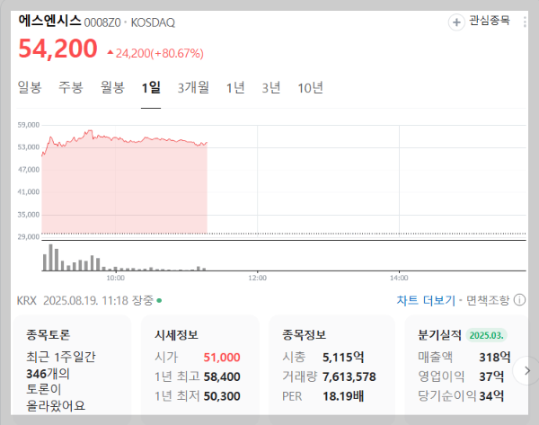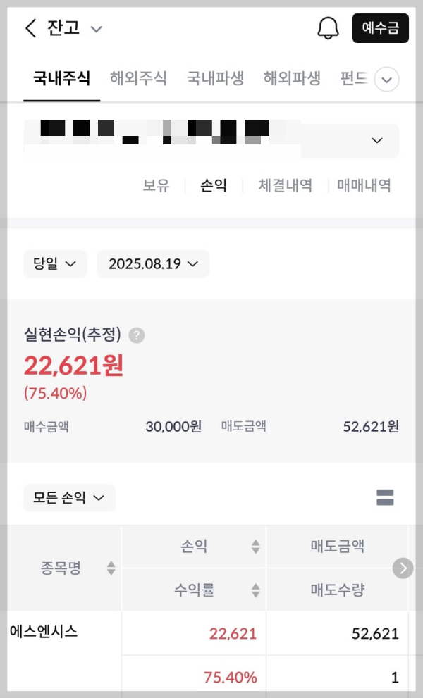 나 : 에스엔시스 1주 매도 손익 22,621원