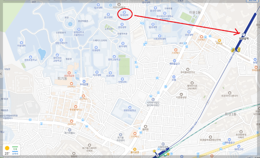 경희대 논술 장소가 아직 미정이기때문에 정확한 상황을 고려할 수 없지만 만약 경희대 논술 장소가 경희대 후문에 가깝다면 다음과 같이 이동할 예정이다. 개인적인 기록용이니 참고만!! 계속 업데이트해 나갈 예정인 포스팅