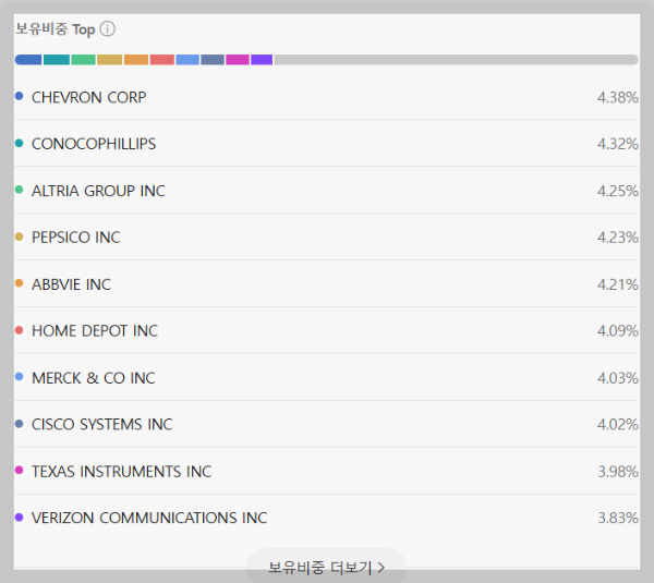 => 이 펀드는 Dow Jones U.S. Dividend 100 Index의 총 수익을 추적하려고합니다. 이 지수는 재무 비율을 기반으로 동료와 비교할 때 기본 강점으로 선택된 지속적으로 지불하는 배당금을 기록한 미국 배당 수익률이 높은 미국 회사의 주식 성과를 측정하도록 설계되었습니다.